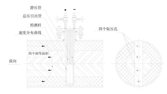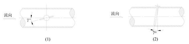 6.1.3 安裝時(shí)均速管流量計(jì)總壓孔必須正對(duì)流向,偏差不大于 7o。
