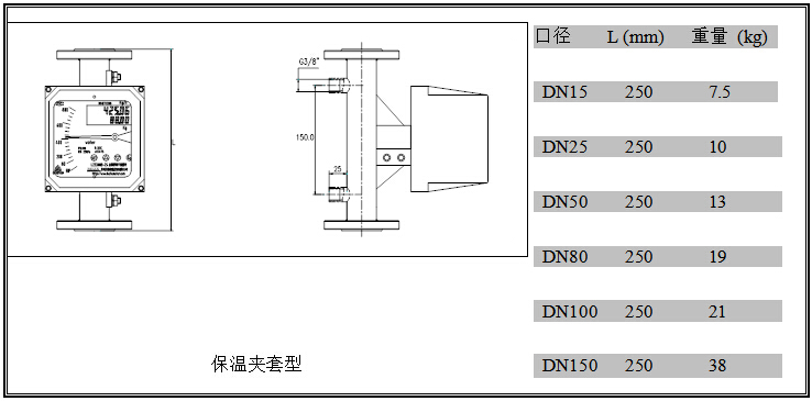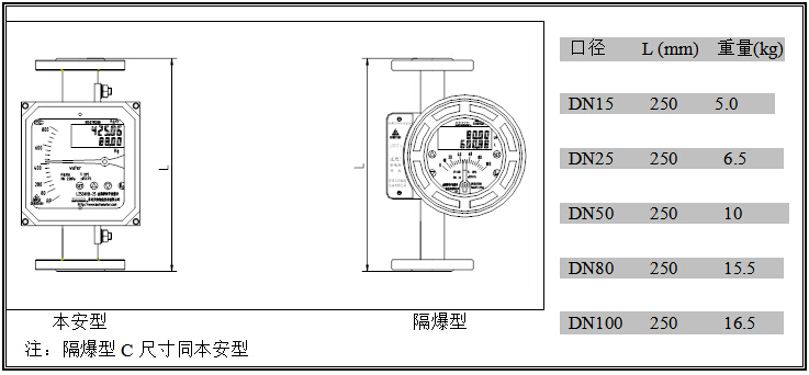 b) CYF/T夾套型外形尺寸及重量 (方形:本安型;圓形:隔爆型)