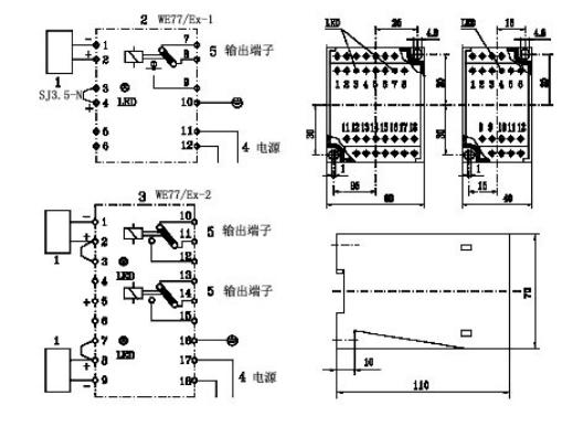 WE77晶體管繼電器WE77/Ex-1和WE77/Ex-2包括一個電源組、晶體管整流放大器和中間繼電器輸出。根據(jù)操作模式分A型R型和RS.