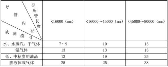 表(一) 導(dǎo)壓管的內(nèi)徑和長度