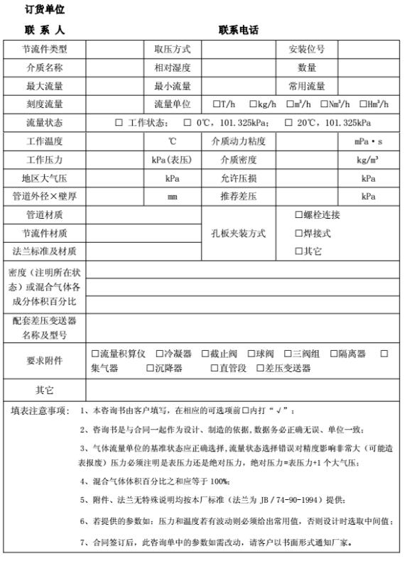 節(jié)流裝置技術(shù)咨詢書