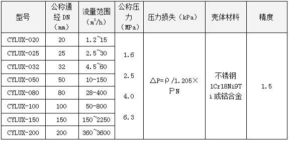 3.1流量計規(guī)格、基本參數(shù)和性能指標(biāo)(見表1)