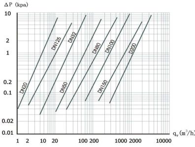 ΔP ——介質(zhì)為干空氣時流量計的壓力損失(KPa),其特性曲線見下圖