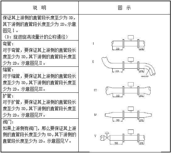 根據(jù)旋進(jìn)旋渦流量計的工作原理和流量計對上、下游直管段要求,對各種上游阻力件,