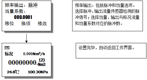 當(dāng)量輸出:與標(biāo)況體積流量對應(yīng)的脈沖輸出端子,輸出頻率由脈沖當(dāng)量系數(shù)決定;
