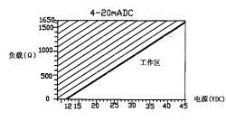 負載:與供電電源有關,在某一電源電壓時帶負載能力見右圖,負載阻抗R與電源電壓V的關系式為R≤50(V-12)Ω。