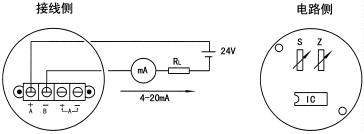 B)擰開變送器電路側蓋子可看到“S”—靈敏度、“Z”—零點兩電位器。